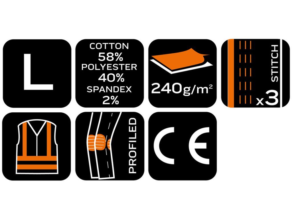 Pracovní kalhoty Mix&Match, šedočerné, velikost L 81-351-2-L od společnosti NEO TOOLS je model kalhot patřící do řady Mix&Match, která je určena k pohodlnému kombinování jednotlivých kusů pracovního oblečení. Kalhoty se vyznačují gramáží 240 g/m2 a materiálovým složením: Materiálové složení: 58 % bavlna, 40 % polyester a 2 % elastan. Jsou vybaveny pevnými trojitými švy, kapsou na kolenní chrániče a profilovanými koleny, které přispívají k odolnosti a pohodlí oděvu. Kalhoty NEO TOOLS mají více možností úložného prostoru - háčky na nářadí a multifunkční kapsy. Reflexní potisk nad koleny je dalším rozlišovacím znakem tohoto modelu, stejně jako praktická identifikační visačka. Pracovní kalhoty značky NEO TOOLS mají certifikát CE podle normy EN ISO 13688:2018.Doplňkové parametry