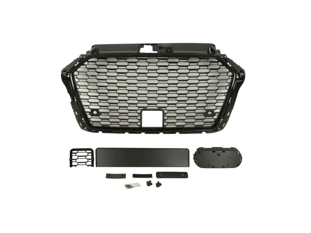 Přední mřížka (bez možnosti montáže originálního štítku, typ RS3, lesklá černá) Vhodné AUDI A3 8V 06.16-05.20Pokud je zboží označeno jako skladem, máme jej fyzicky na skladě a expedujeme jej nejpozději následující pracovní den.