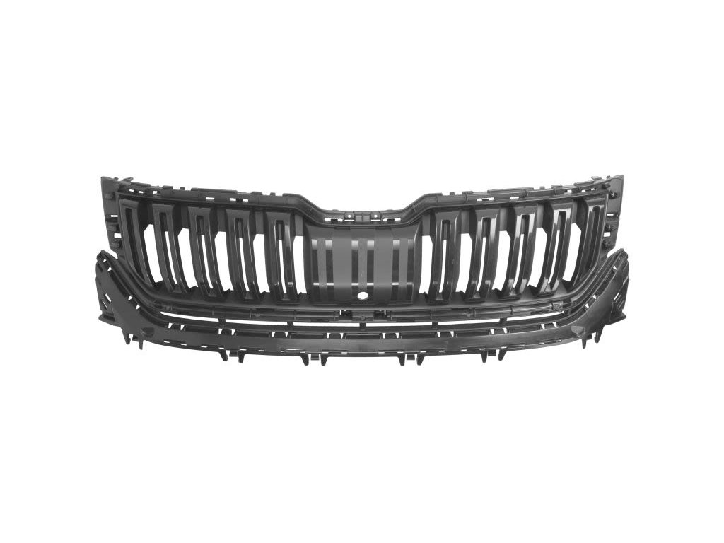 Přední maska, mřížka (s výřezem kameru, s lemováním, leskle černá) ŠKODA KODIAQ 03.17-12.18
