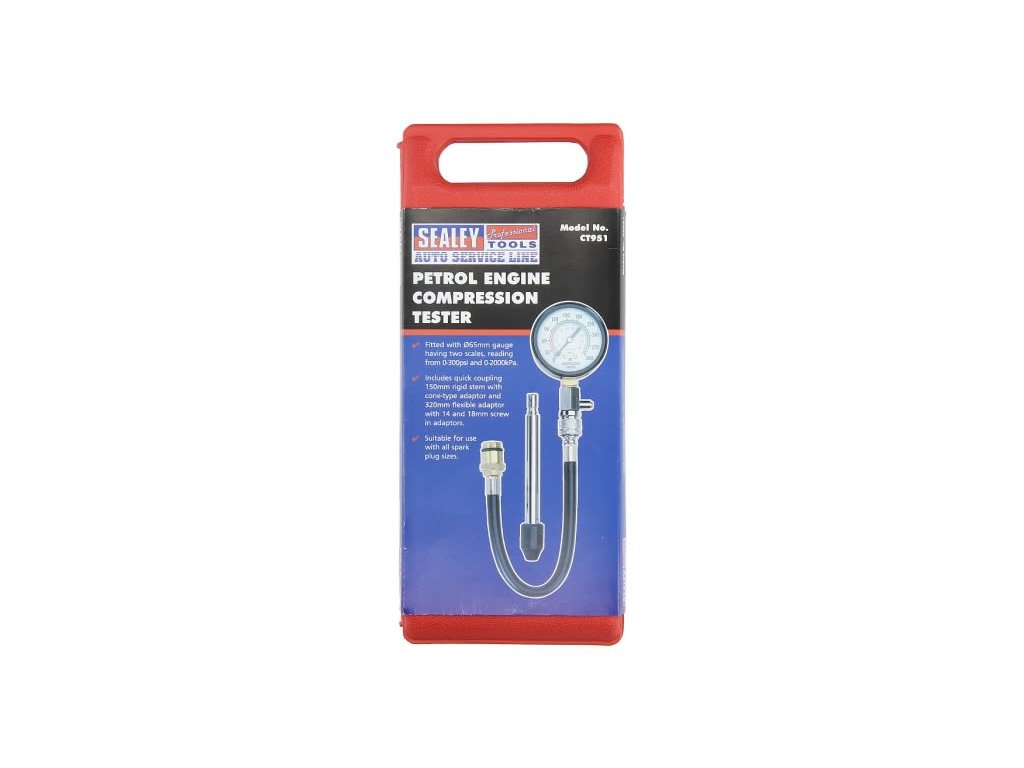SEALEY Měřič komprese pro benzínové motory, měřící stupnice do 20bar, vyměnitelné hroty 14, 18mmDoplňkové parametry