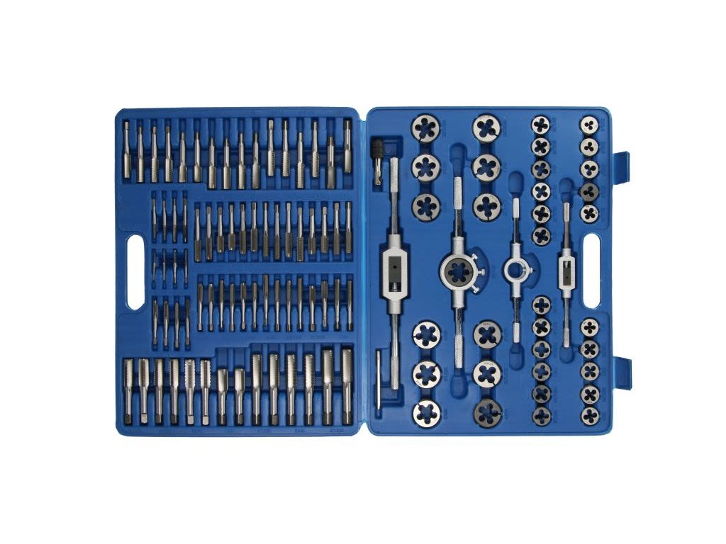 Sada metrických závitníků, ruční 110 kusů, velikost závitu: M10x1 / M10x1,25 / M11x1,5 / M12x1 / M12x1,25 / M12x1,5 / M12x1,75 / M14x1 / M14x1,25 / M14x1,5 / M14x2 / M16x1 / M16x1,5 / M1Doplňkové parametry