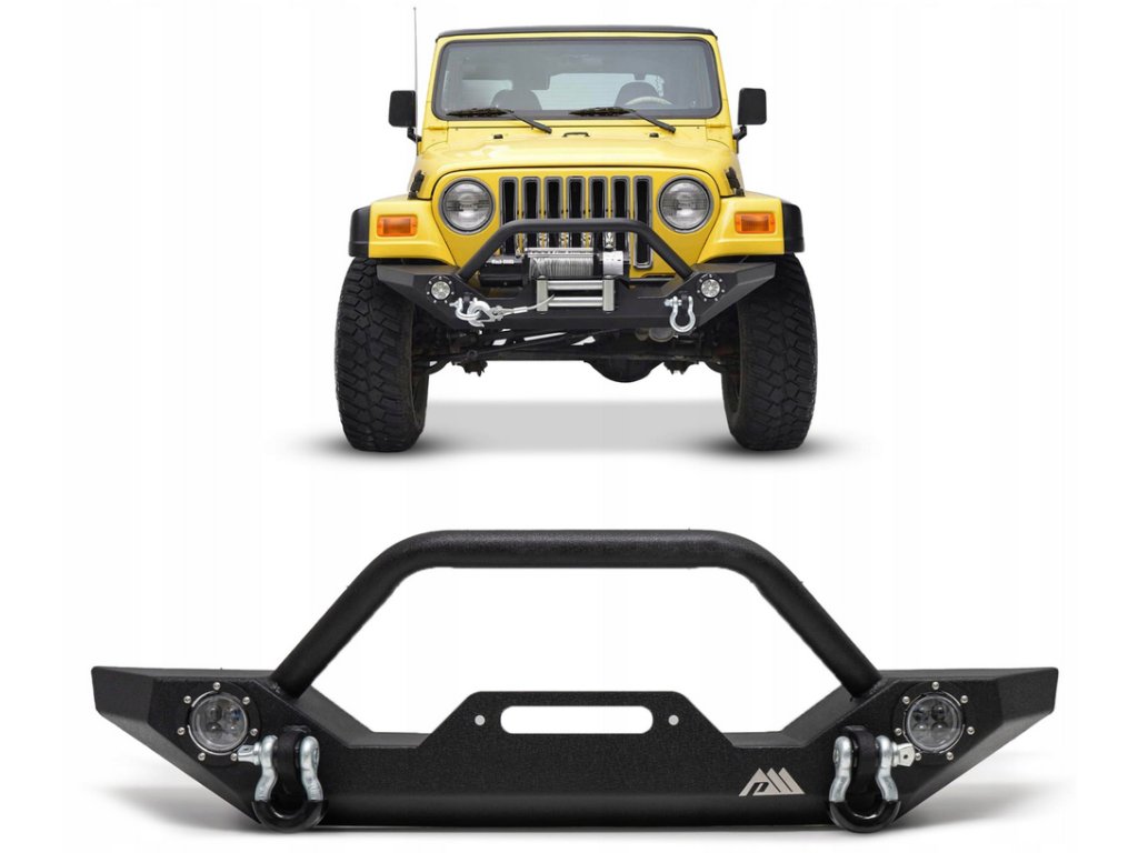 Přední nárazník model Aspen navržený společností Paramount Automotive – automobilovými nadšenci z Kalifornie – speciálně pro model JEEP WRANGLER YJ/TJ 1987–2006. Nárazník je vyroben z oceli válcované za studena o tloušťce 5 mm, s trubkami o průměru 5 cm a tloušťce 0,3 cm. Nárazník je navíc chráněn dvoufázovým procesem práškového lakování s použitím základního epoxidového nátěru – vzniklá struktura "TIGER textured" zajišťuje nejen odolnost, ale také estetický vzhled po dlouhou dobu používání. Odolné vůči všemu, co se jim postaví do cesty, jsou nárazníky Paramount skutečnou lahůdkou pro milovníky off-roadu a stylového designu. Nabízený model je vybaven robustními úchyty na šekle, které jsou součástí balení. Nárazník má také prostor pro instalaci navijáku s nosností až 5500 kg. Na bocích je zabudováno přídavné LED osvětlení ve formě kulatých lamp (2x4W; krytí IP68) chráněných proti nárazům během jízdy v terénu. Celkový výkon světel je 8W, což odpovídá 100W halogenové žárovce! Osvětlení lze použít jako denní světla. Přední trubka nárazníku chránící mřížku Wranglera je vybavena dvěma držáky pro montáž přídavného osvětlení.