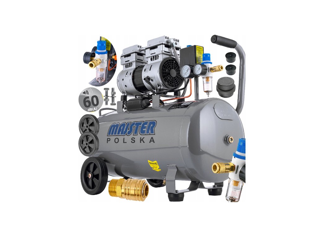 Bezolejový kompresor 50L, 2.04KM, 175l/min, Majster Polska MP-0064