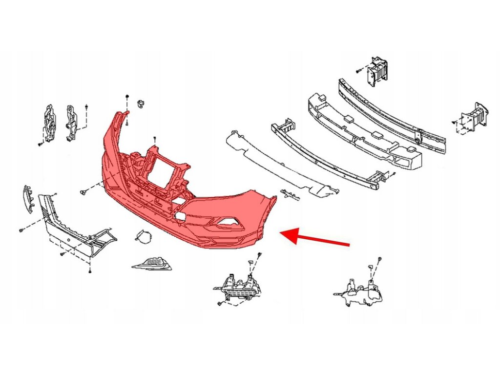 Přední nárazník. Má otvory pro mlhovku a otvor pro tažné zařízení.