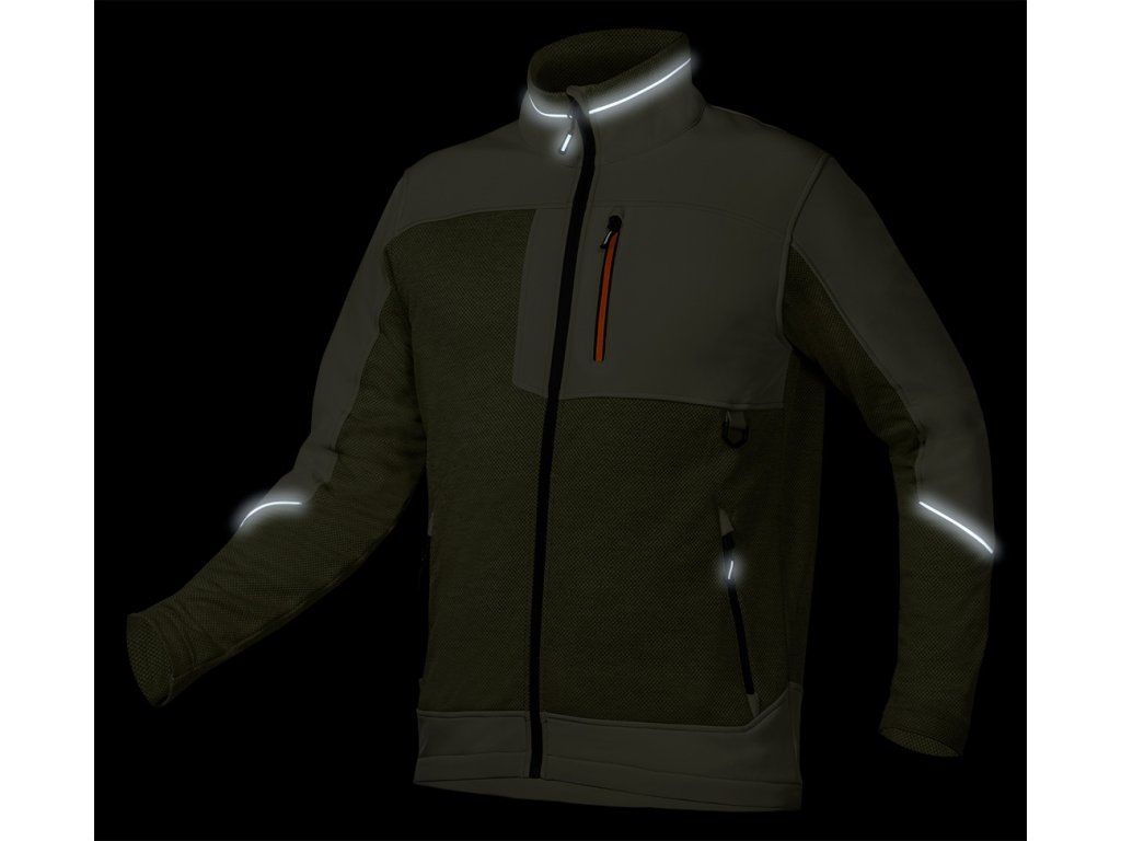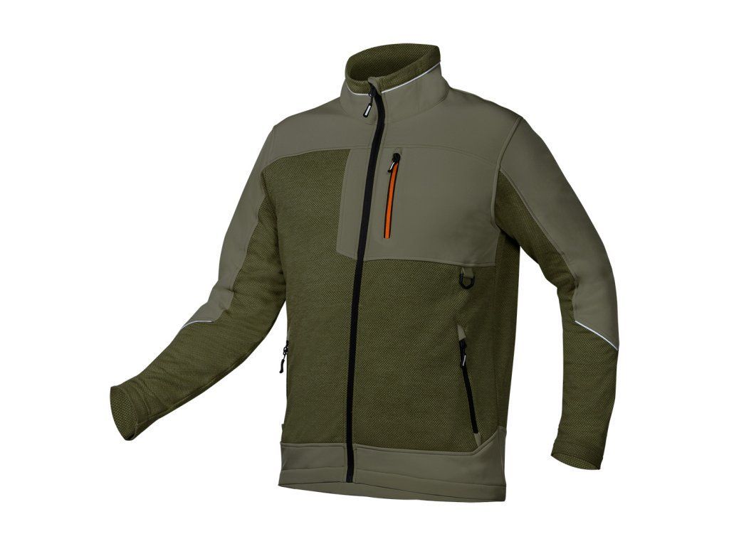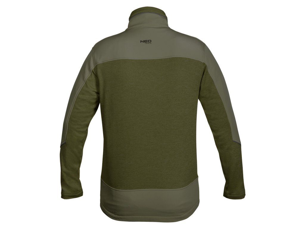 Outdoorová softshellová mikina, zelená, velikost M, 81-517-M od NEO TOOLS je pletená pracovní mikina ve vazbě "rybí šupiny" se softshellovými vložkami.