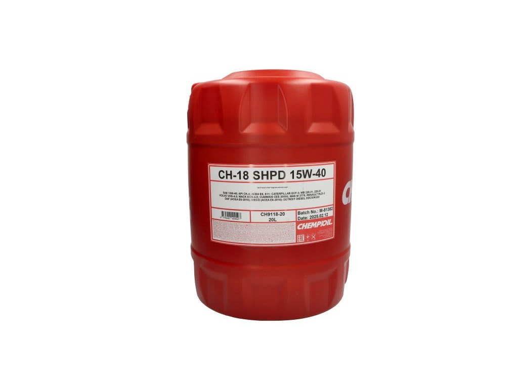 Motorový olej (20 l) 15W40 (s nízkým obsahem mýdla) API CK-4 ACEA E6 E9 CATERPILLAR ECF-3 CUMMINS 20086 DAF ACEA E6 DETROIT DIESEL 93K222 DEUTZ DQC IV-18 LA IVECO MACK EO-S 4.5 MAN 3677 MAN 3775 MB 228Doplňkové parametry