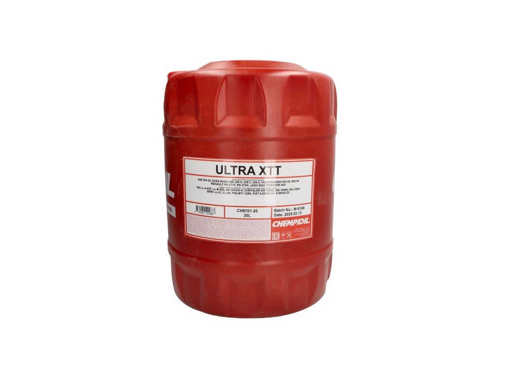 Motorový olej (20 l) 5W40 API CH-4 SN ACEA A3 B4 BMW LL-01 BMW LL-98 CHRYSLER MS-10850 CHRYSLER MS-10896 CHRYSLER MS-12991 FIAT 9.55535 H2 FIAT 9.55535 Z2 GM LL-A-025 GM LL-B-025 JASO MADoplňkové parametry