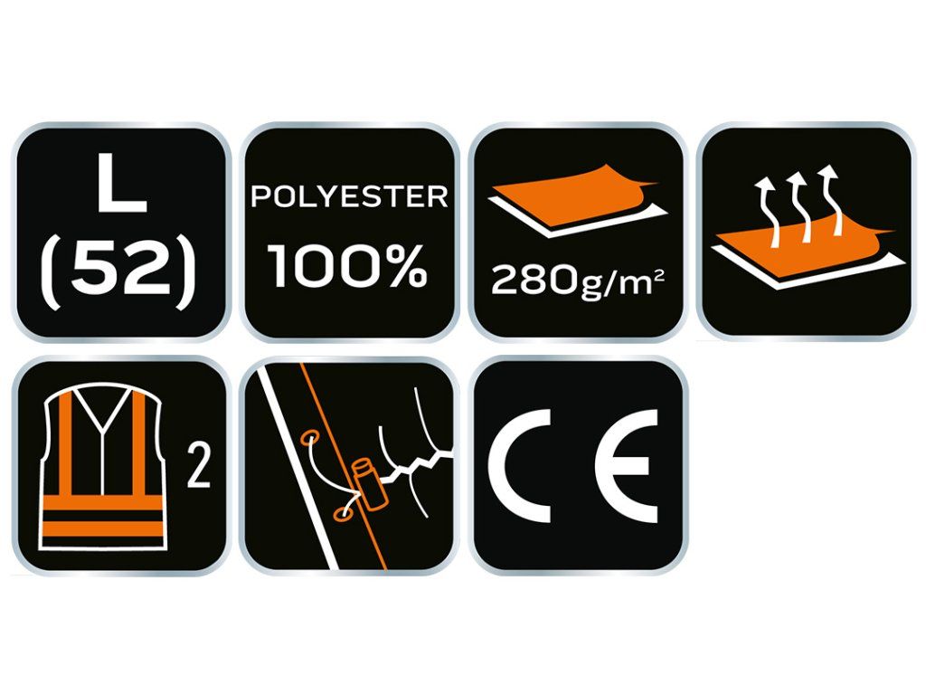 Fleecová výstražná mikina NEO (ref. č. 81-740-L) s vysokou viditelností je praktickým řešením pro zvýšení bezpečnosti uživatele, spočívající v signalizaci jeho přítomnosti za každých světelných podmínek jako za denního světla, tak i za tmy při umělém osvětlení, např. světlomety vozidel. Lehký, pohodlný a teplý fleece s gramáží 280g/m2 poskytuje maximální pohodlí užívání při práci při nižších teplotách. Mikina má 3 velké kapsy na zip. Zárukou kvality je evropský certifikát a zhotovení v souladu s normou EN ISO 13688:2013. Soulad s evropskými bezpečnostními standardy zajišťuje certifikát CE. Značka NEO splňuje očekávání profesionálů.Doplňkové parametry