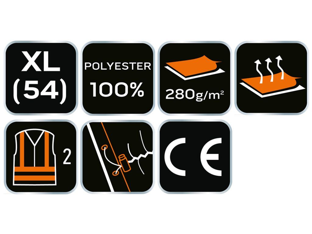 Fleecová výstražná mikina NEO (ref. č. 81-740-XL) s vysokou viditelností je praktickým řešením pro zvýšení bezpečnosti uživatele, spočívající v signalizaci jeho přítomnosti za každých světelných podmínek jako za denního světla, tak i za tmy při umělém osvětlení, např. světlomety vozidel. Lehký, pohodlný a teplý fleece s gramáží 280g/m2 poskytuje maximální pohodlí užívání při práci při nižších teplotách. Mikina má 3 velké kapsy na zip. Zárukou kvality je evropský certifikát a zhotovení v souladu s normou EN ISO 13688:2013. Soulad s evropskými bezpečnostními standardy zajišťuje certifikát CE. Značka NEO splňuje očekávání profesionálů.