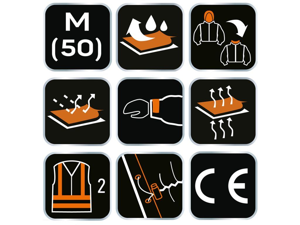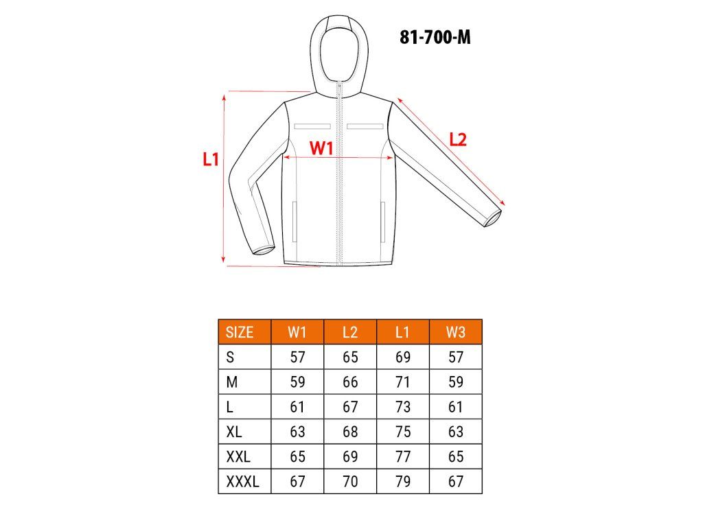 Softshellová bunda NEO (ref. č. 81-700-M) s vysokou viditelností je praktickým řešením pro zvýšení bezpečnosti uživatele, spočívající v signalizaci jeho přítomnosti za každých světelných podmínek jako za denního světla, tak i za tmy při osvětlení světlomety vozidel. Je vyrobena z vysoce kvalitního voděodolného, větruvzdorného a prodyšného softshellového materiálu. Lehká, pohodlná a zároveň teplá dokonale se hodí pro použití během studených a deštivých dnů. Integrované, nastavitelné stahování ve spodním švu a stahování na suchý zip na koncovkách rukávů umožňují udržet teplo, s maximálním pohodlím používání. Bunda se vyznačuje použitím tmavých barev v místech nejvíce vystavených znečištění. Odepínací kapuce na vnitřní straně s úpravou z pěkného a teplého fleecu. Garantem kvality je evropský certifikát a zhotovení v souladu s normou EN ISO 13688:2013. Značka NEO splňuje očekávání profesionálů.Doplňkové parametry