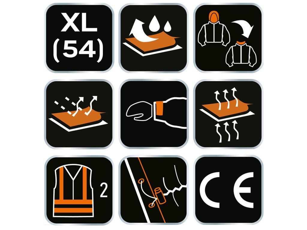 Softshellová bunda NEO (ref. č. 81-700-XL) s vysokou viditelností je praktickým řešením pro zvýšení bezpečnosti uživatele, spočívající v signalizaci jeho přítomnosti za každých světelných podmínek jako za denního světla, tak i za tmy při osvětlení světlomety vozidel. Je vyrobena z vysoce kvalitního voděodolného, větruvzdorného a prodyšného softshellového materiálu. Lehká, pohodlná a zároveň teplá dokonale se hodí pro použití během studených a deštivých dnů. Integrované, nastavitelné stahování ve spodním švu a stahování na suchý zip na koncovkách rukávů umožňují udržet teplo, s maximálním pohodlím používání. Bunda se vyznačuje použitím tmavých barev v místech nejvíce vystavených znečištění. Odepínací kapuce na vnitřní straně s úpravou z pěkného a teplého fleecu. Garantem kvality je evropský certifikát a zhotovení v souladu s normou EN ISO 13688:2013. Značka NEO splňuje očekávání profesionálů.