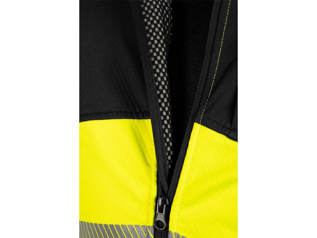 Softshellová výstražná pracovní bunda, žlutočerná, velikost M, 81-702-M od společnosti NEO TOOLS je bunda s vysokou viditelností, která patří do třídy 2 podle normy EN ISO 20471. Má praktickou a zároveň moderní žlutočernou barvu. Díky natištěným reflexním pruhům zajišťuje viditelnost po setmění. Pruhy také umožňují, aby tkanina zůstala plně pružná, což se promítá do vysoké úrovně pohodlí oděvu. Bunda NEO TOOLS se složením materiálu ze 100% polyesteru a gramáží 275 g/m2 se bude dobře chovat v různých povětrnostních podmínkách. Náprsní kapsa a boční kapsy jsou uzavíratelné na zip, aby bylo možné uschovat mnoho cenných drobností. Nastavitelný spodní lem rukávů a jmenovka zvyšují využitelnost tohoto modelu.Doplňkové parametry