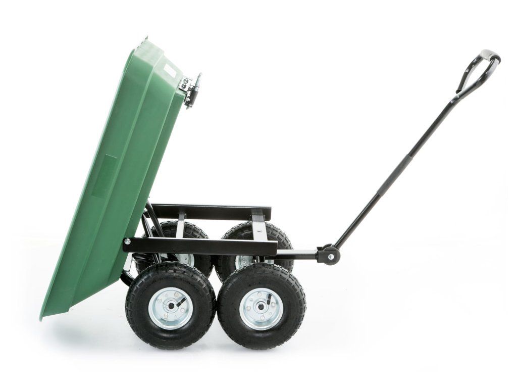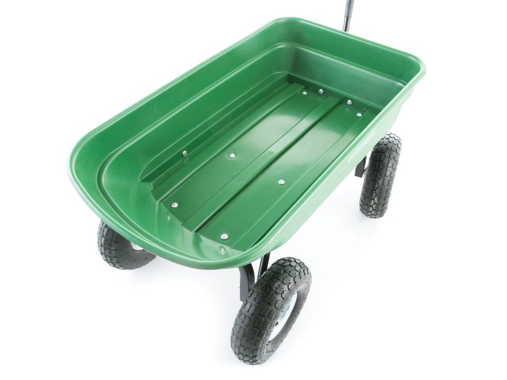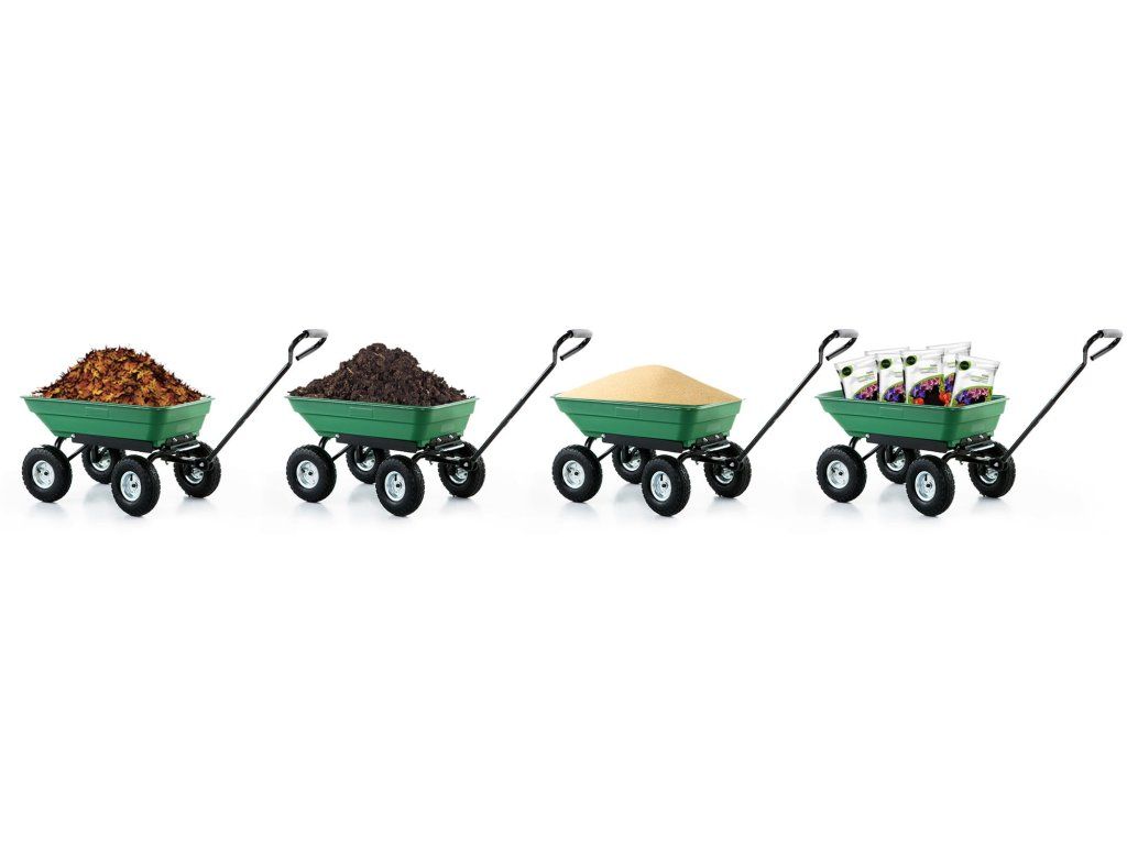 - ✅ Kola: pneumatická 250 mm Zahradní trakař, vozík a sklápěč aneb 3 v 1 Praktický a všestranný - lze jej použít na hraní i práci na zahradě i mimo ni. Představujeme vám univerzální zahradní vozík, který kombinuje 3 funkce: zahradní trakař, vozík a sklápěč. Je vyroben z robustních materiálů (ocelová konstrukce) + mísa z odolného plastu a má nosnost až 350 kg. Proč právě náš výrobek? kombinuje 3 funkce: trakař, vozík a sklápěč nosnost až 350 kg ocelová, pevná konstrukce pneumatická kola s vysokou odolností běhounová pneumatika pro dobrou přilnavost velmi odolná nakládací mísa vysoká kvalita a estetika zpracování torzní náprava + kloubová rukojeť pohodlná, ergonomická rukojeť potažená měkkou, protiskluzovou pěnou odolná zelená mísa Mísa je vyrobena z plastu odolného proti poškození. Speciální žebrování zajišťuje vysokou tuhost a pevnost mísy, díky čemuž je její použití velmi univerzální. Misku lze vyprázdnit vyklopením (vysypáním) díky systému zvedání mísy. Rozměry zahradního vozíku HIGHER